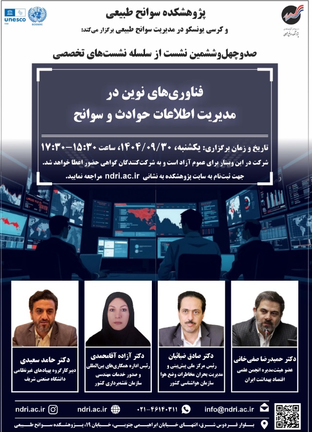 نشست فن آوری نوین در مدیریت اطلاعات حوادث وسوانح ۳۰ آذر ۱۴۰۴ | ۱۲:۰۴ کد : ۵۷۱۴۹ اطلاعیه ارسال به دیگران نام شما ایمیل شما ایمیل دریافتکننده ارسال انصراف تعداد بازدید:۲۱۸ دعوتنامه نشست فن آوری نوین در مدیریت اطلاعات حوادث وسوانح
